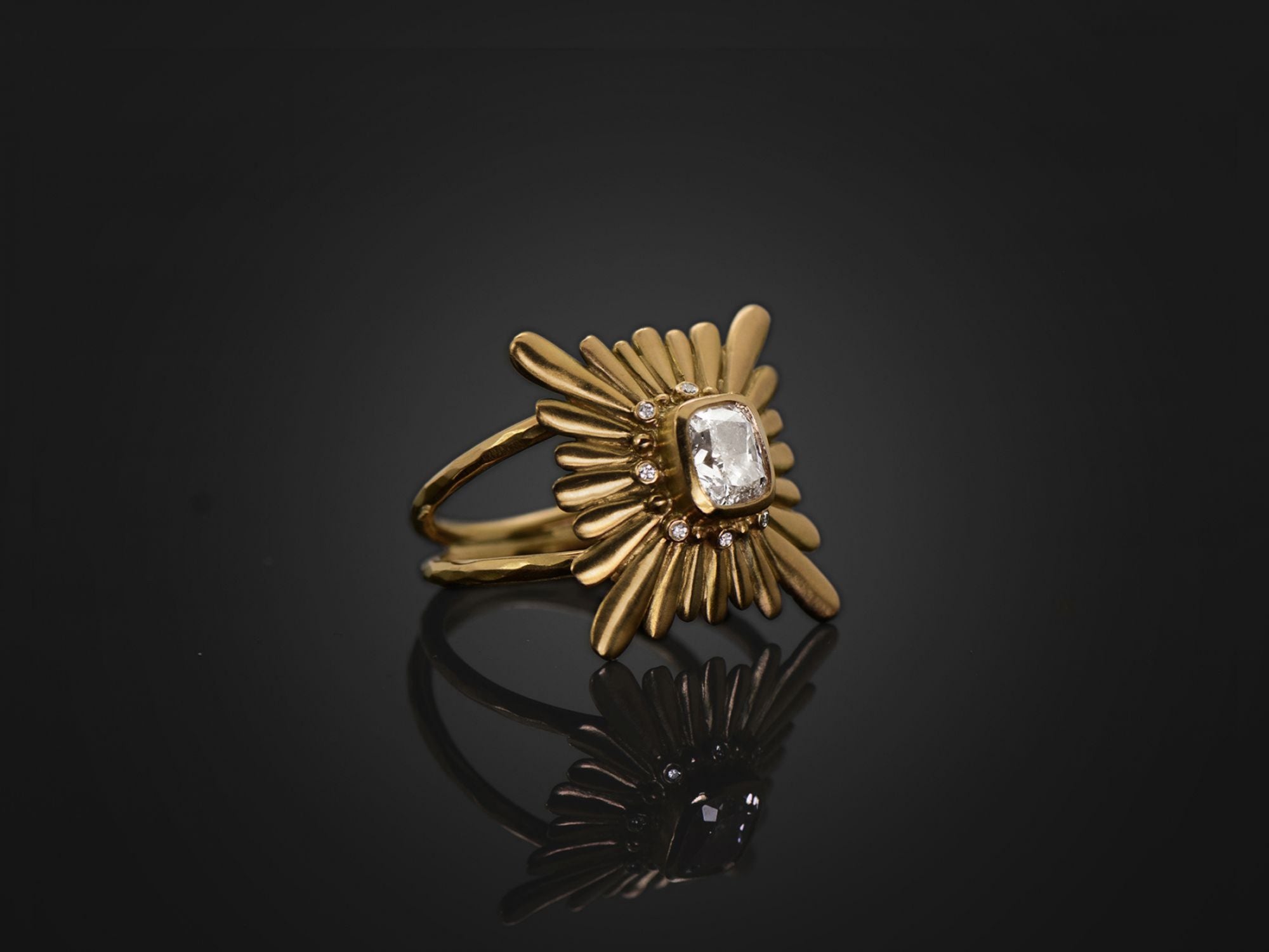 Or jaune 750/1000, diamant coussin G VS1 1,01cts et diamants 0,033cts.